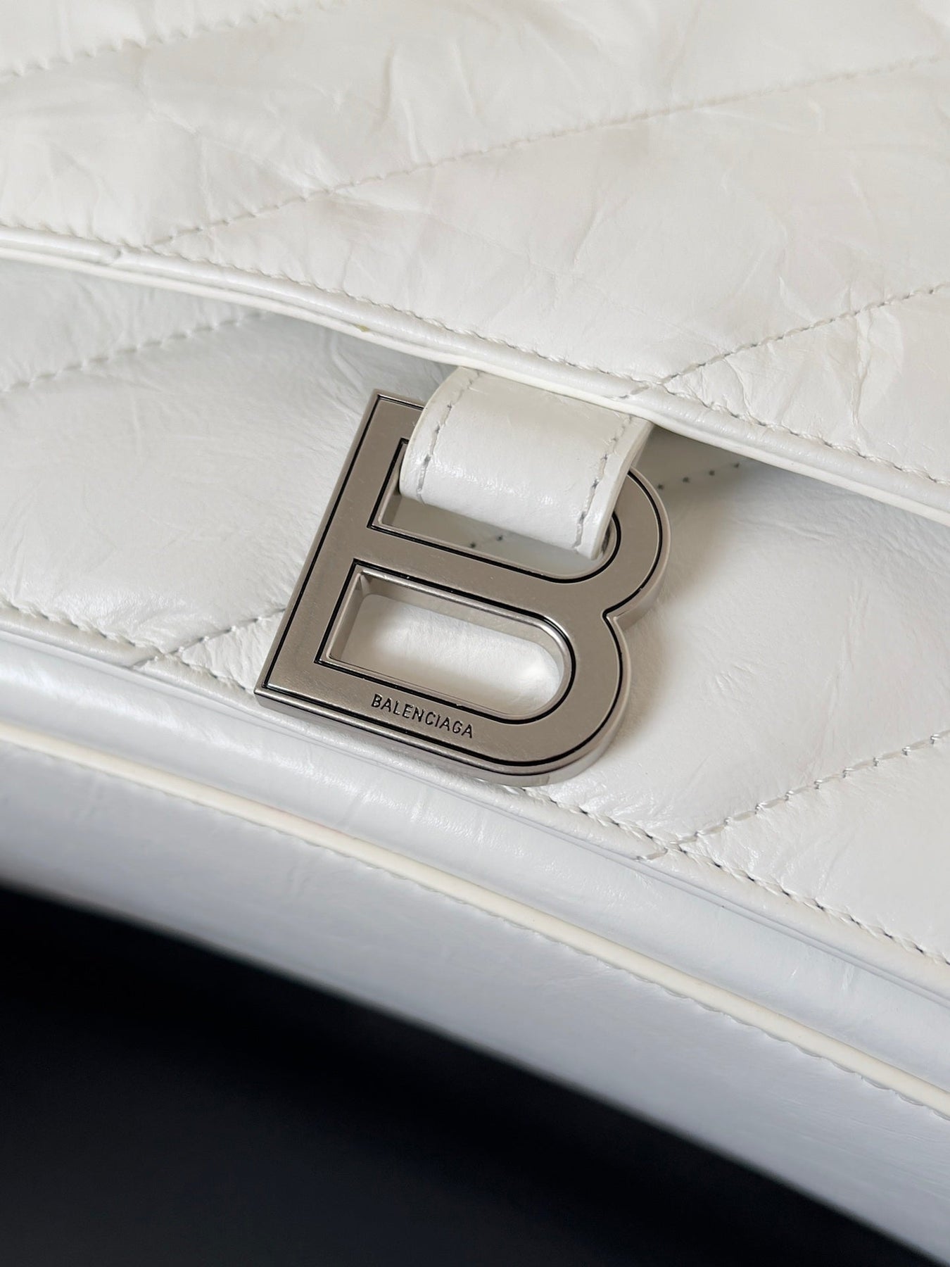 CRUSH CHAINED BAG 32 IN WHITE QUILTED CRUSHED CALFSKIN SILVER HARDWARE
