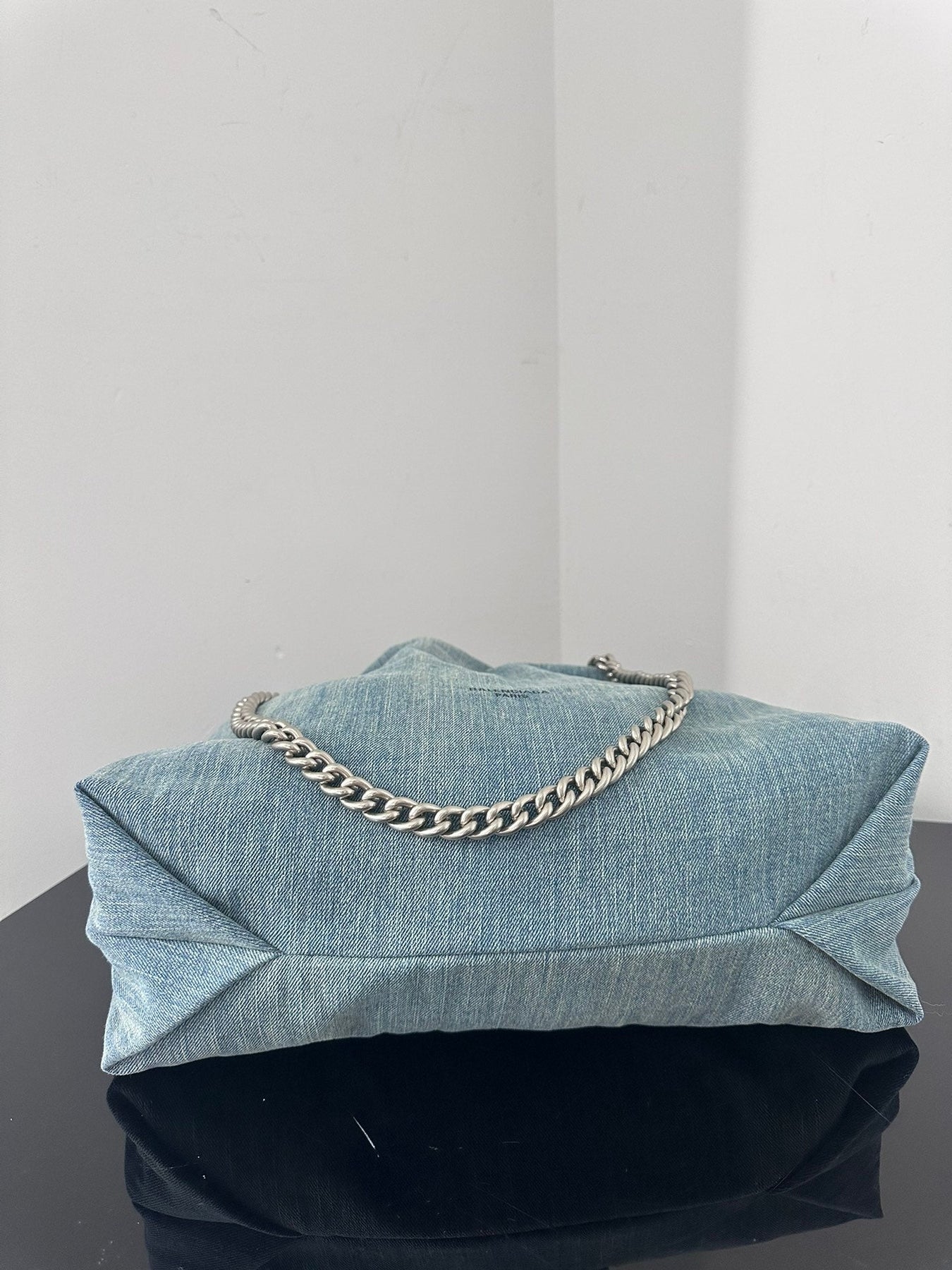 CRUSH LARGE TOTE BAG 46 IN BLUE WASHED DENIM SILVER HARDWARE