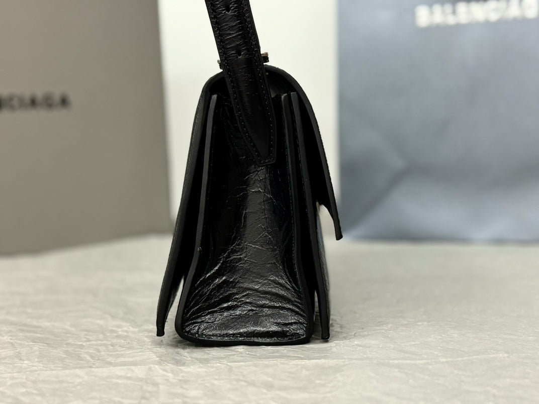 CRUSH SHOULDER BAG 25 IN BLACK CRUSHED CALFSKIN LEATHER STRAP SILVER HARDWARE