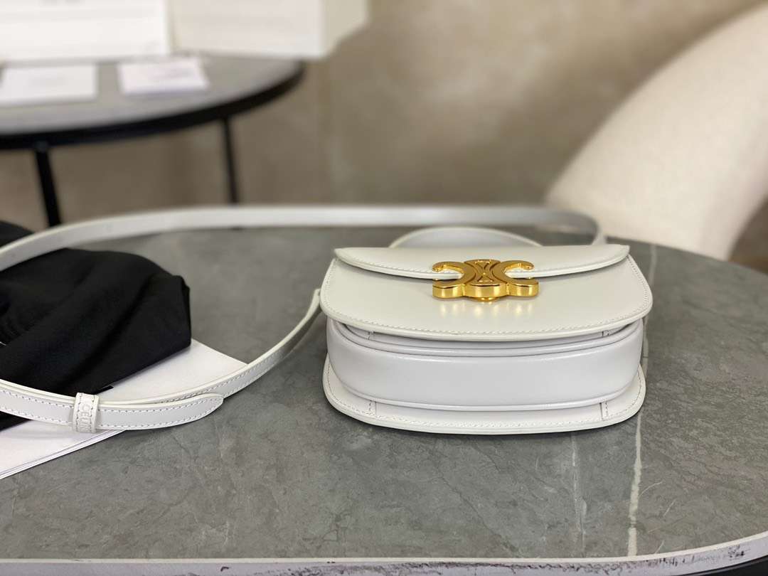 Cel*ne handle white smooth leather 15.5×11.5x5cm