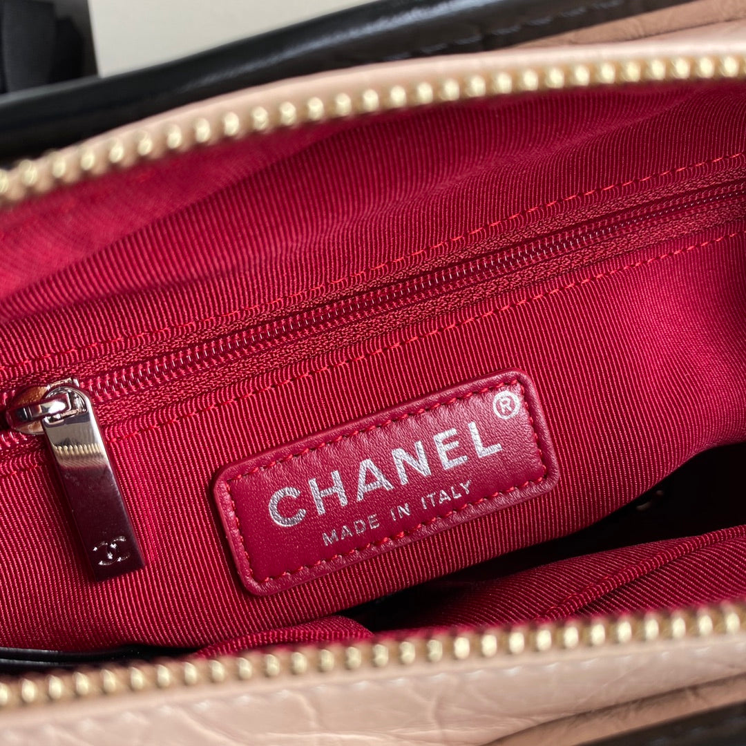 CC GABRIELLE MINI 20 HOBO BAG IN ALMOND BEIGE MIX BLACK CALFSKIN