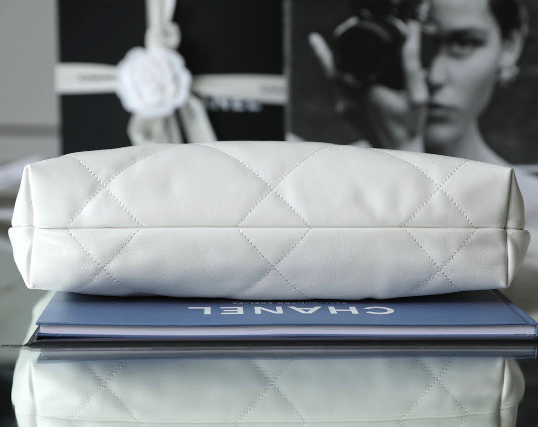 Chan*l 11 handbag 22 shopping woman’s white smooth leather 35cm
