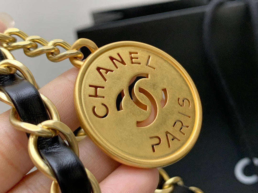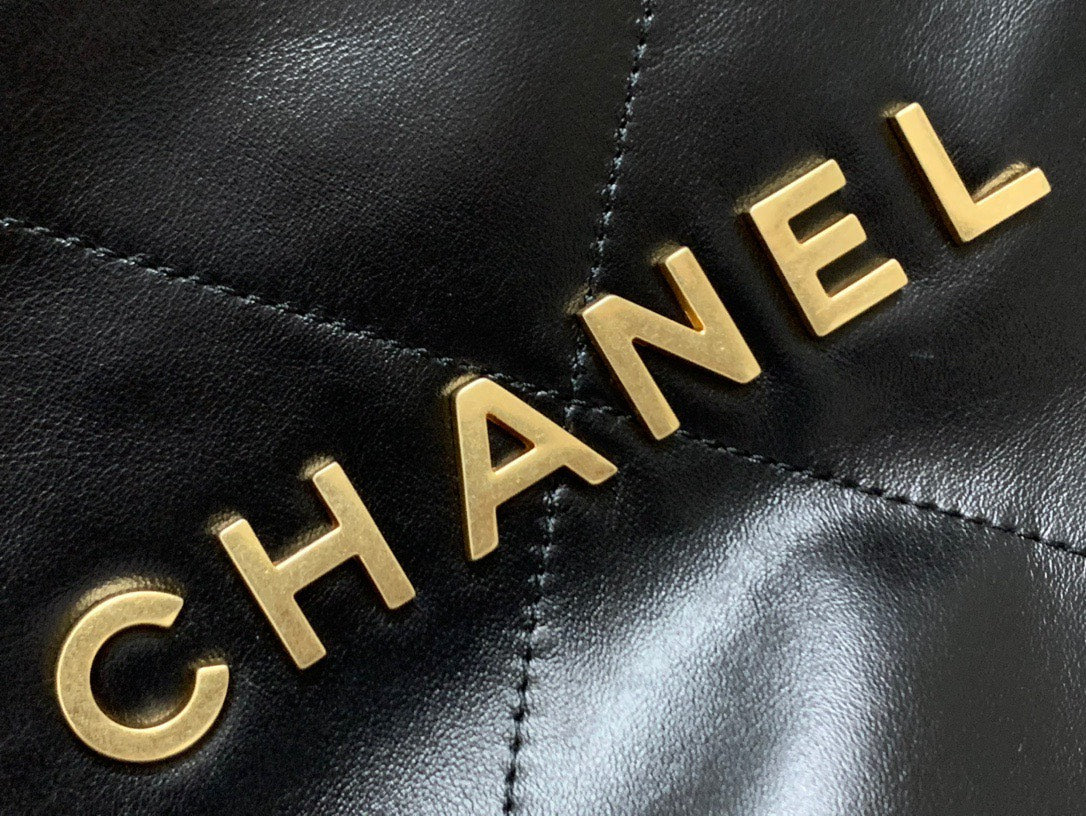 Chan*l 22 shiny calfskin shopping handbags black with wallet 22cm