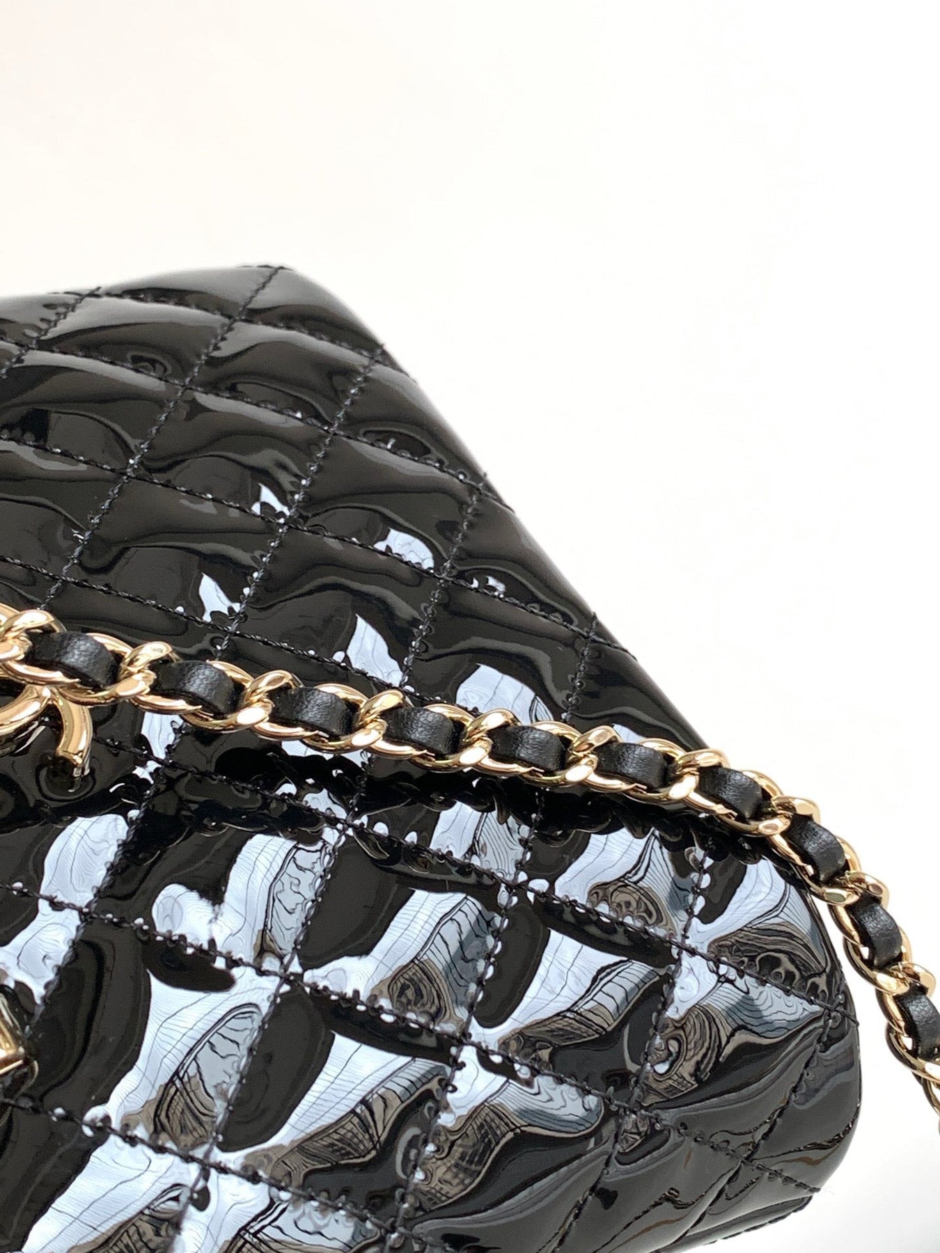 Chan*l alma mini shiny leather handbags black lock gold 12cm - image 7