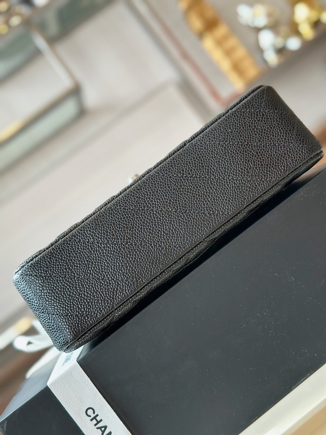 Chan*l classic 11 handbags woman’s black leather lock silver 23cm