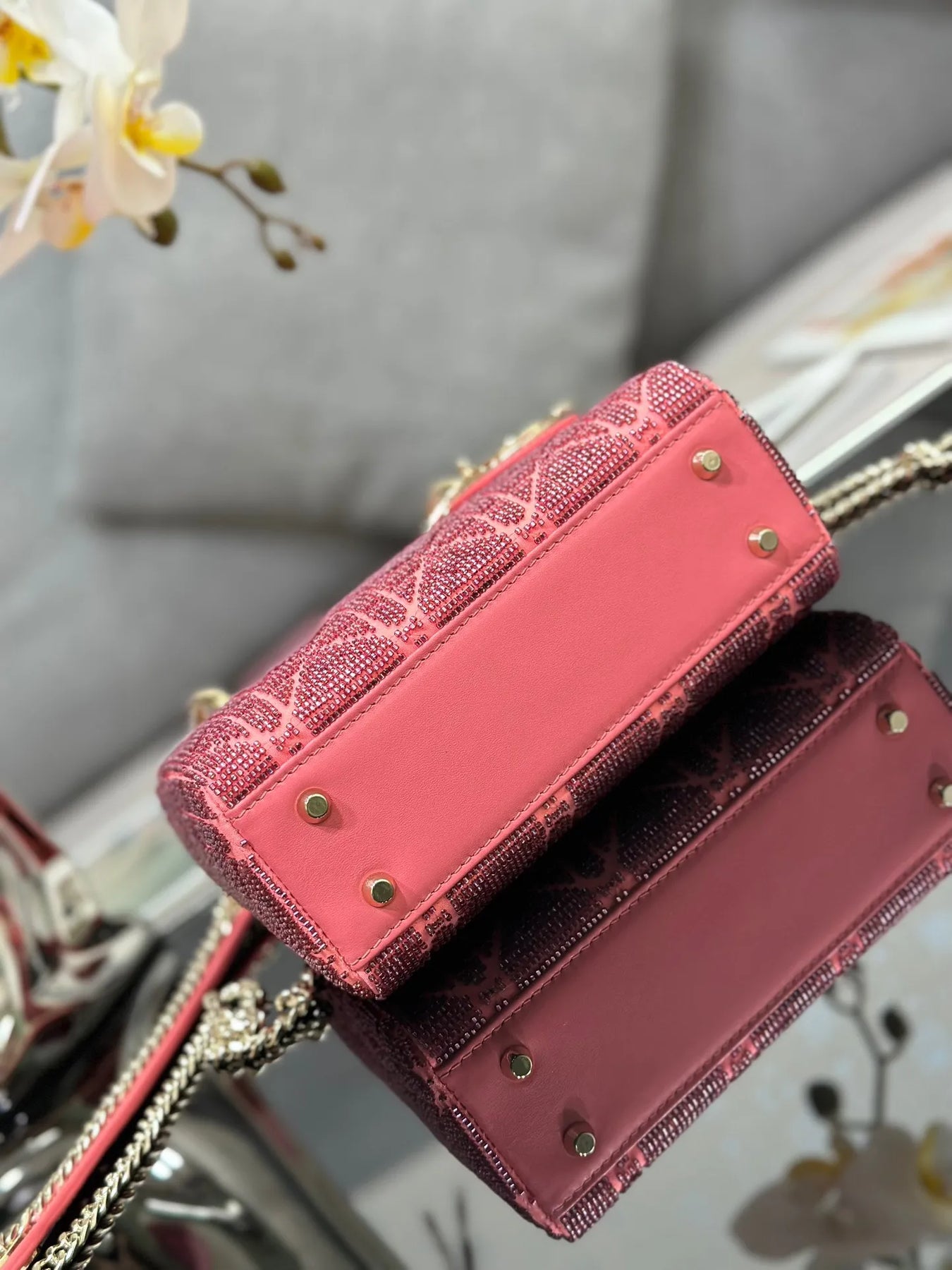 Di*r lady super pink handbag with beads 17x15x7cm