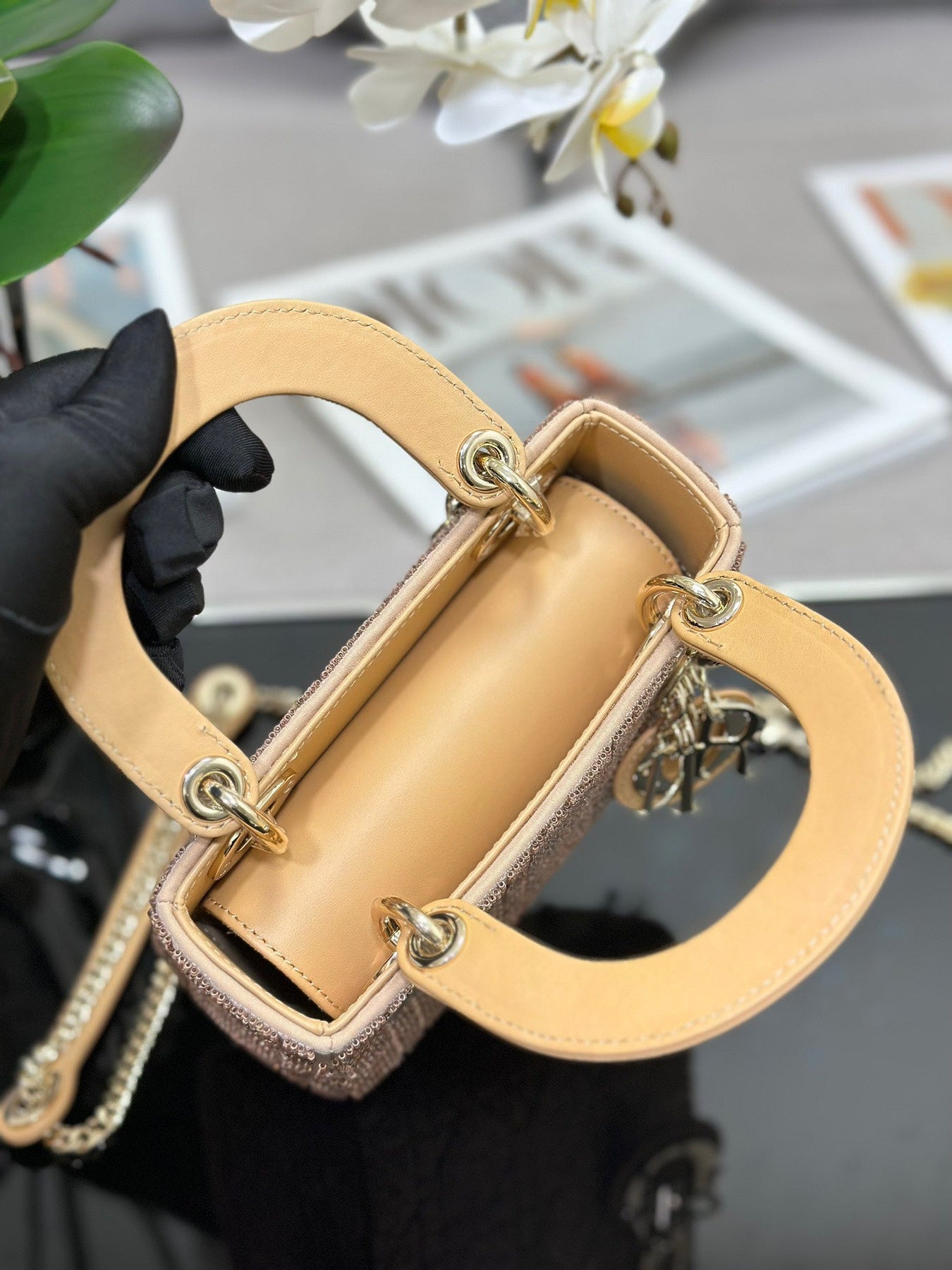 Di*r lady super yellow beaded handbag 17x15x7cm