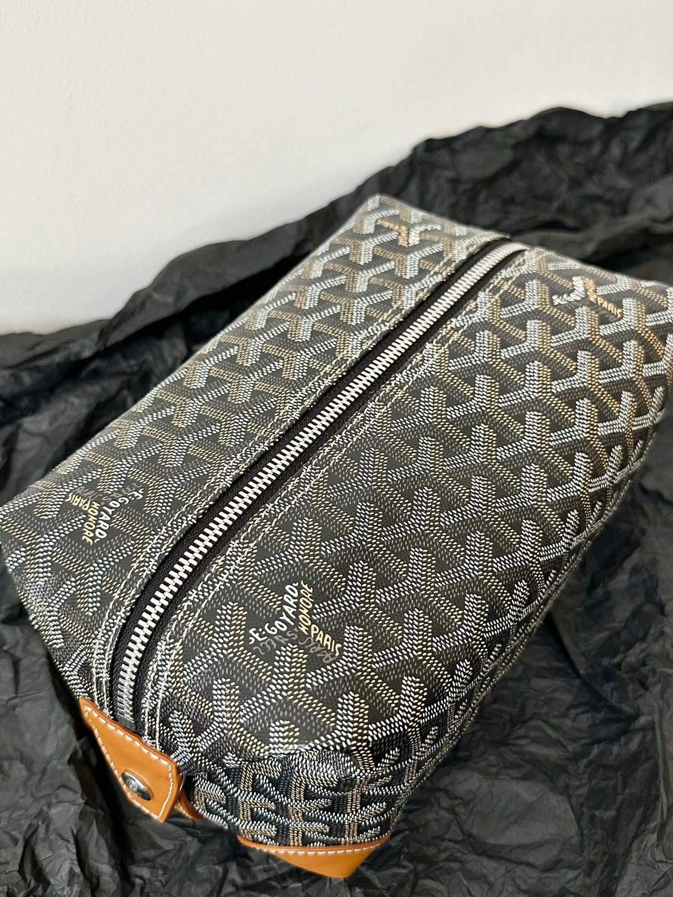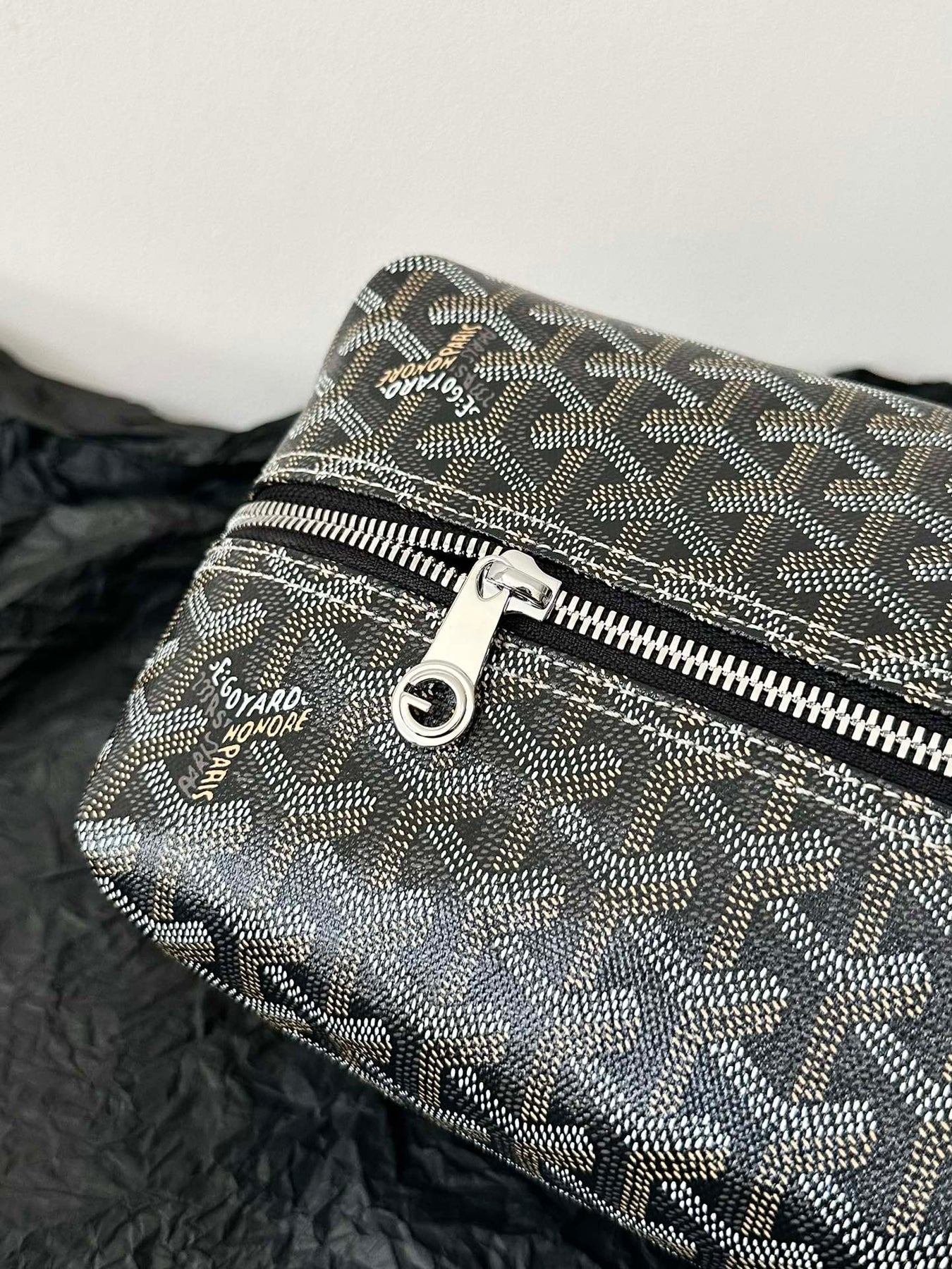 GOYA COSMETIC BAG 24CM BLACK AND TAN CANVAS