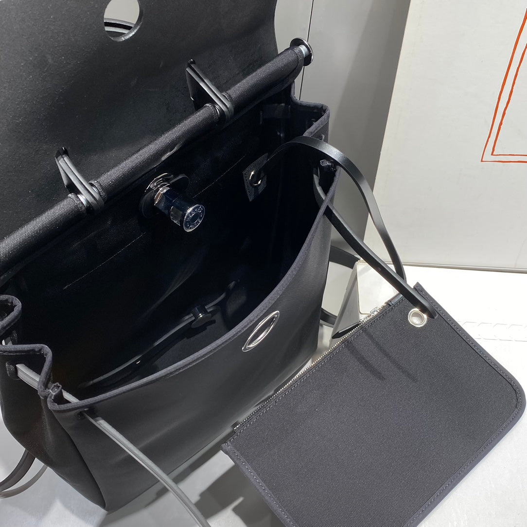 HERBAG A DOS ZIP RETOURNE BACKPACK 29 IN BLACK CANVAS AND CALFSKIN