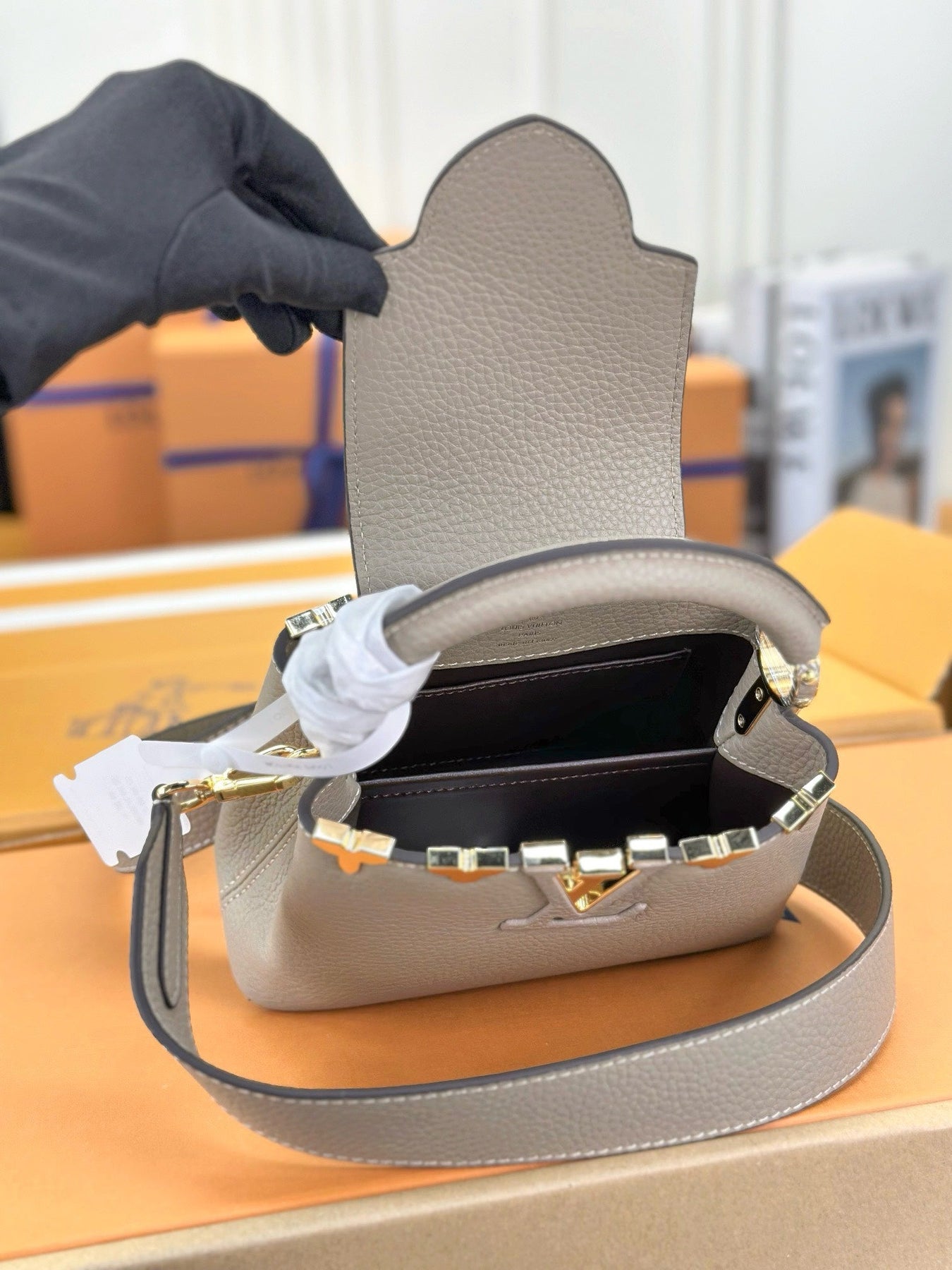 Lou*s Vuitt*n lv capucines lock gold handbags cowhide leather 21cm