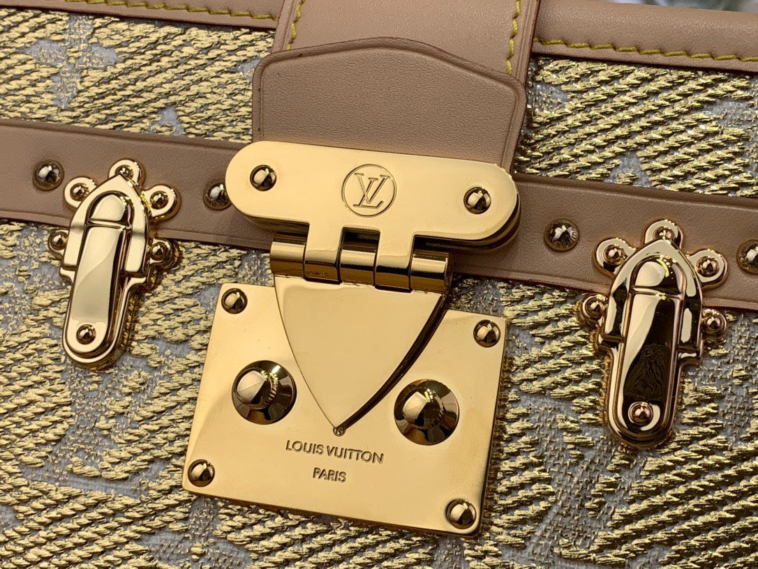 Lou*s Vuitt*n lv petite box shape lock plated gold handbags 20×12.5x5cm