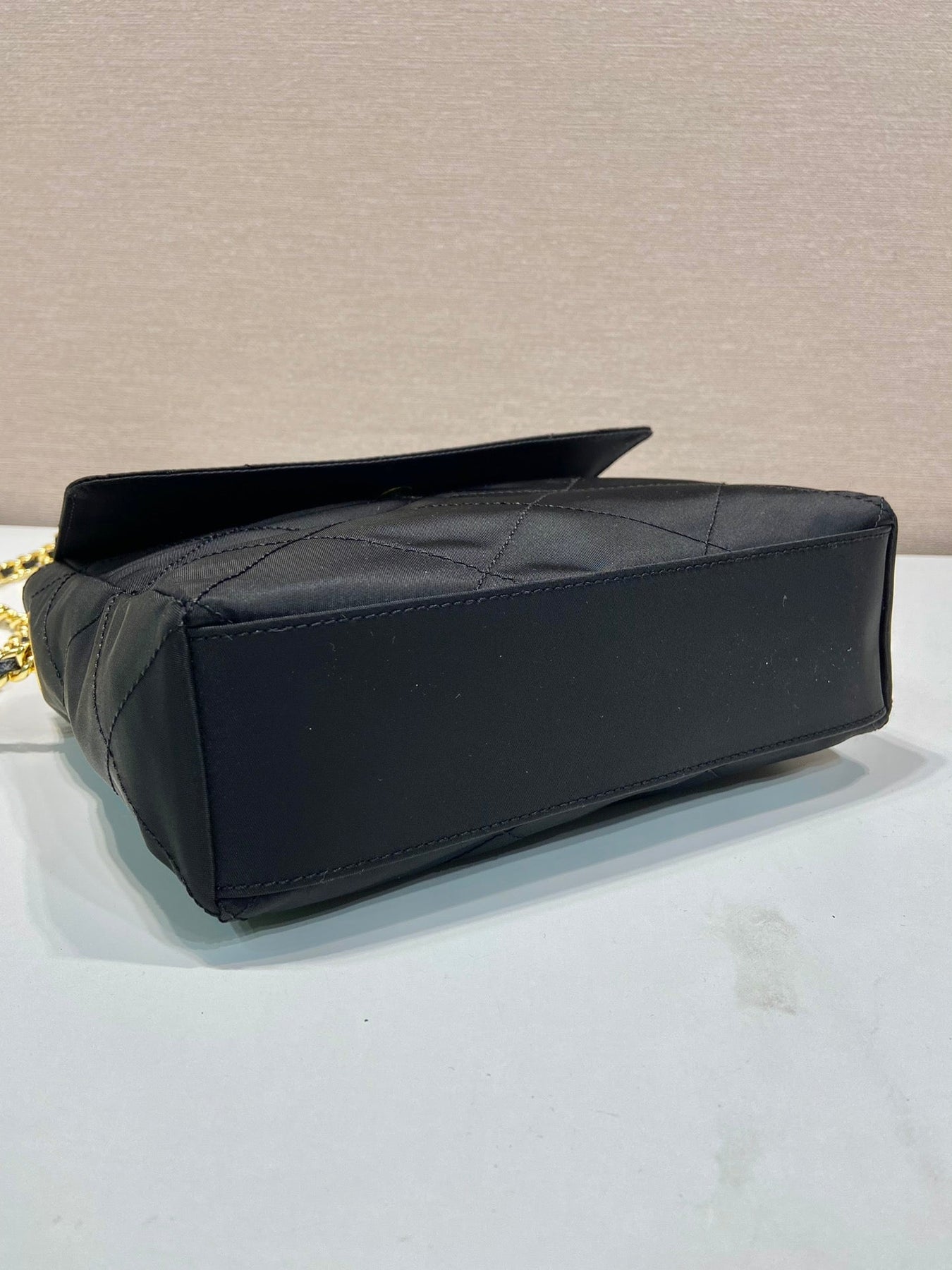 large quilted flap bag 23 in black re-nylon fabric gold chain - image 3