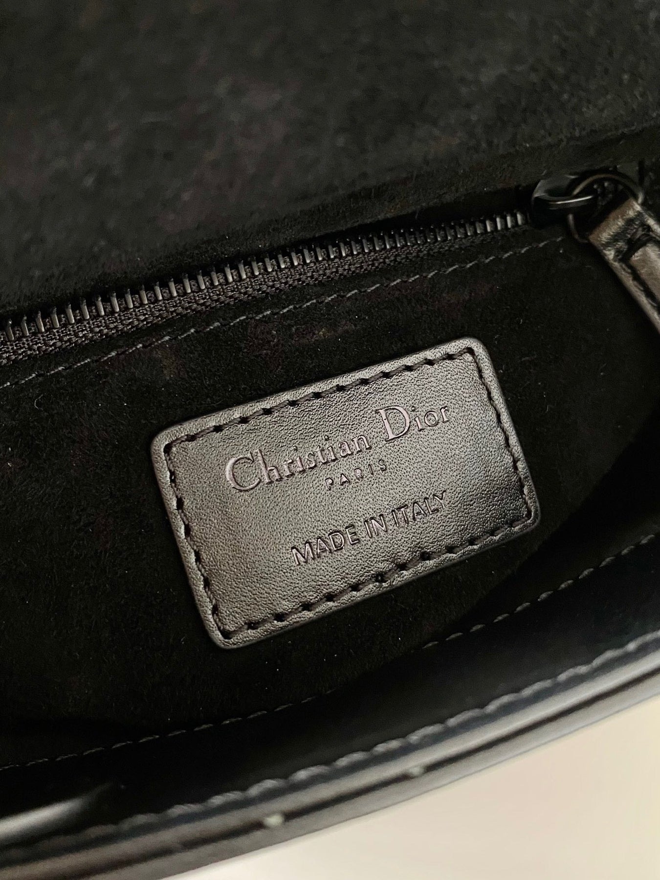 Di*r lady matte like auth women’s handbag black diamond pattern 17cm - image 8