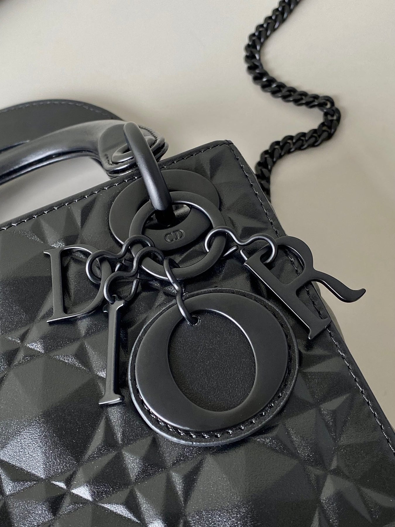 Di*r lady matte like auth women’s handbag black diamond pattern 17cm