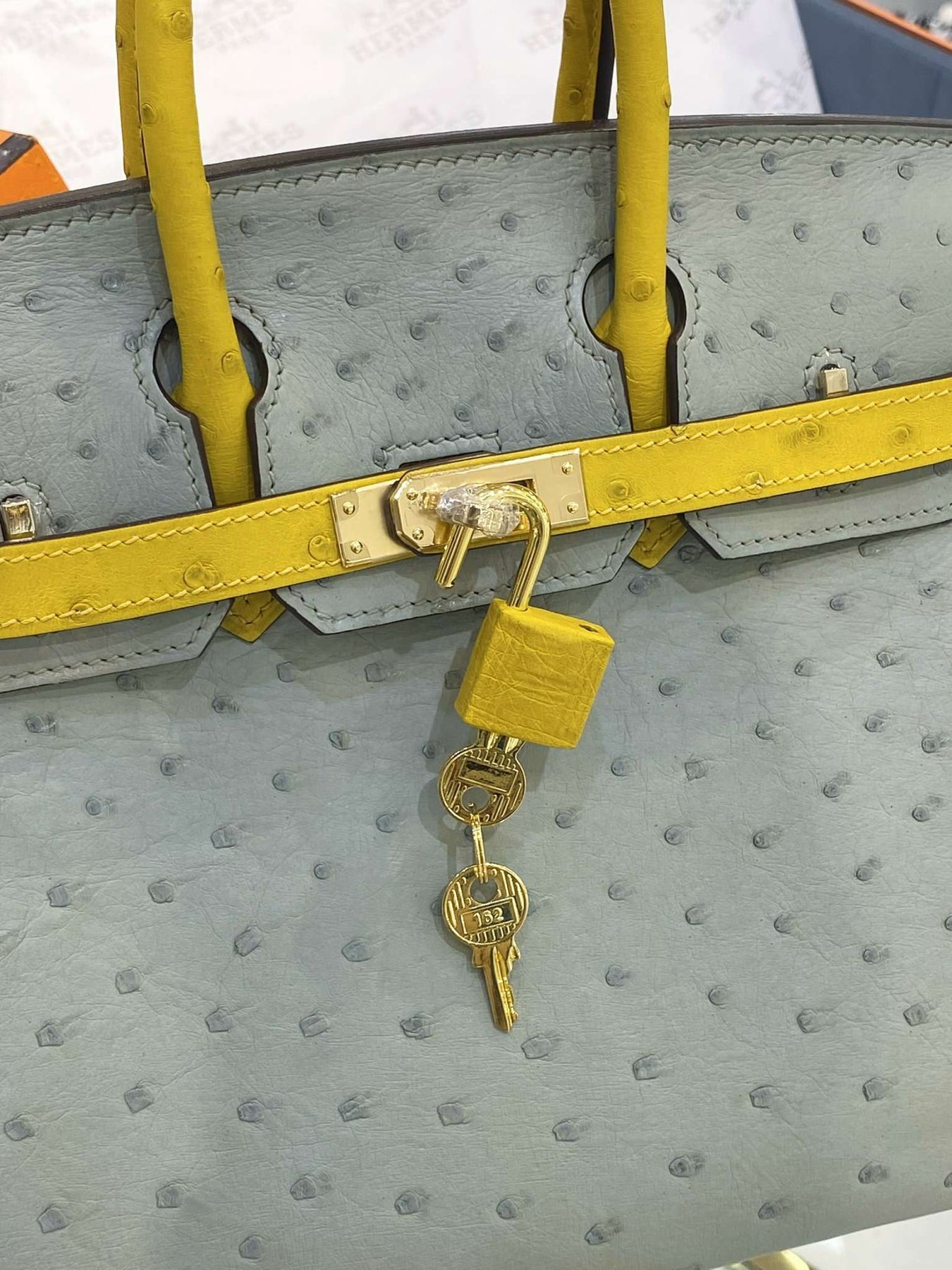 Herm*s birkin ostrich leather like auth 1:1 handbags lock pattern 25cm - image 6