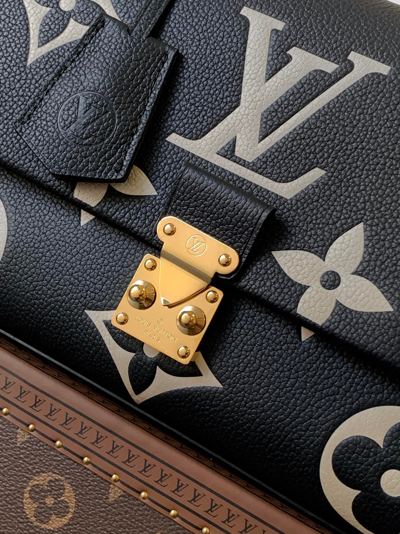 lv madeleine 30 in black mix white monogram calfskin embossed logo