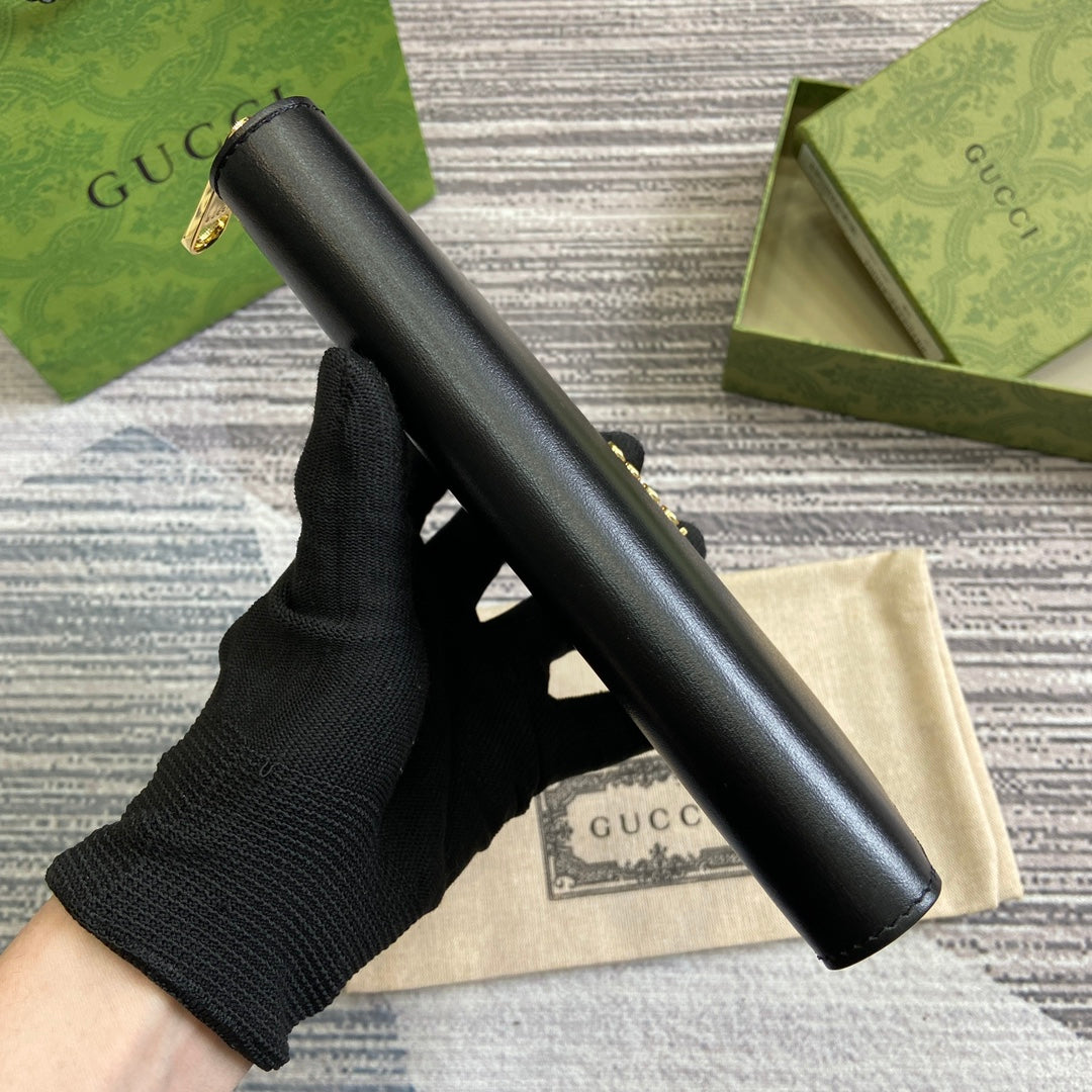 ZIP AROUND WALLET 20 IN BLACK CALFSKIN GOLD HARDWARE